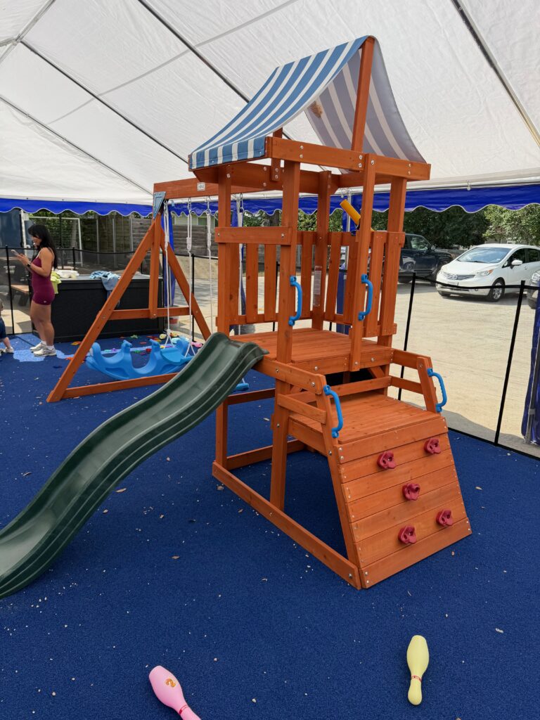 Your kids will go crazy for the two-story playhouse at The Hive! There’s a huge fenced-in backyard with tables and some toys for smaller kids, and the playscape has slides and a play kitchen.